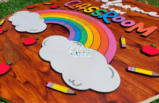 Welcome to Our Classroom Wooden Sign – Colorful Rainbow Teacher Door Sign, Back-to-School Classroom Decor