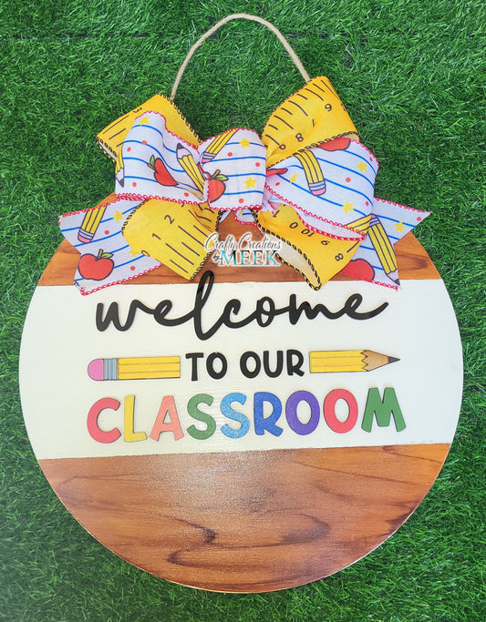 Welcome Classroom Door Sign – Colorful Teacher Back-to-School Décor with Pencil & Apple Bow