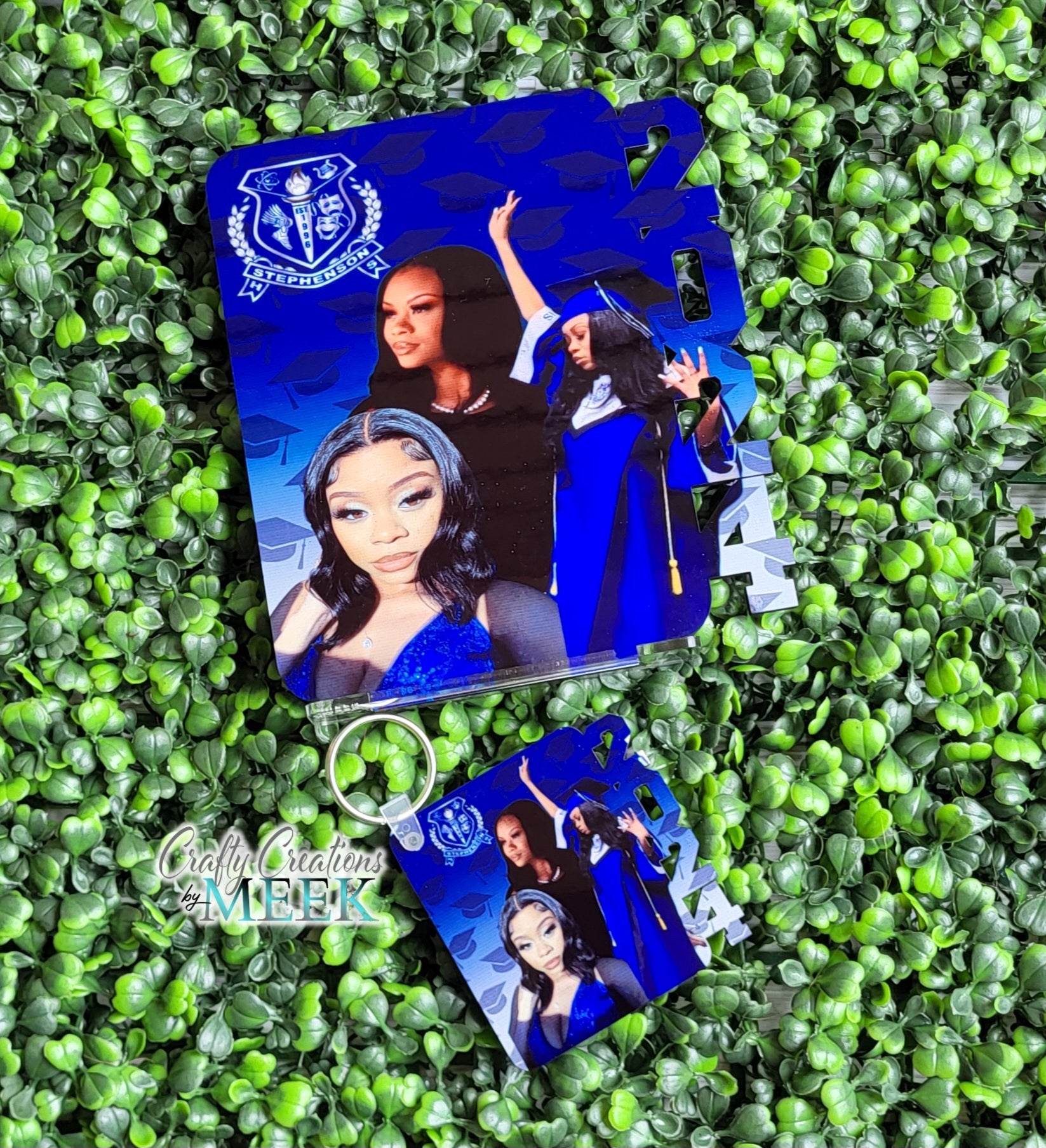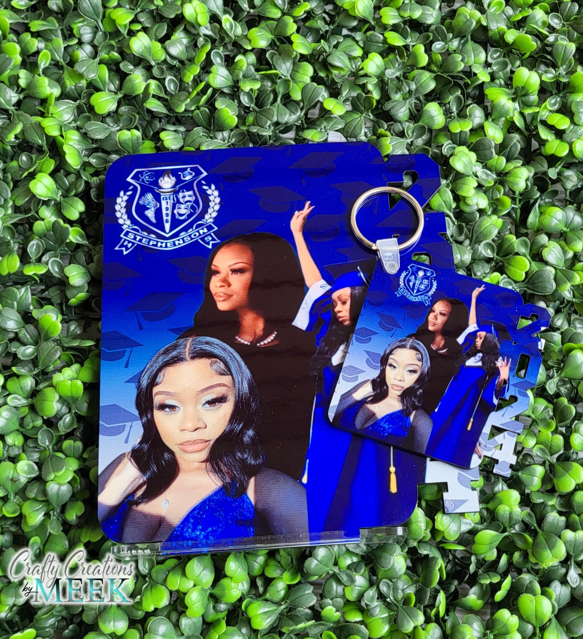 Celebrate the graduating class of 2024 with our sublimation print frame & keychain. Keep memories close with this unique keepsake, perfect for a graduation gift. Honor their achievement with a personalized touch.