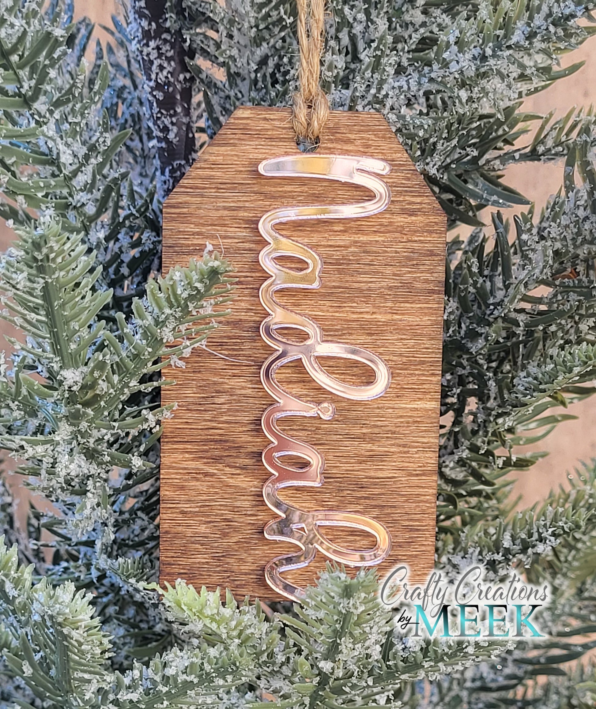 This stocking tag is the perfect way to add a touch of festive cheer to your home this holiday season! Crafted from 1/8" baltic birch wood and high-quality acrylic, it attaches easily to any tree or fireplace to make a lasting Christmas display that family and friends will adore. Hang a stocking with style!