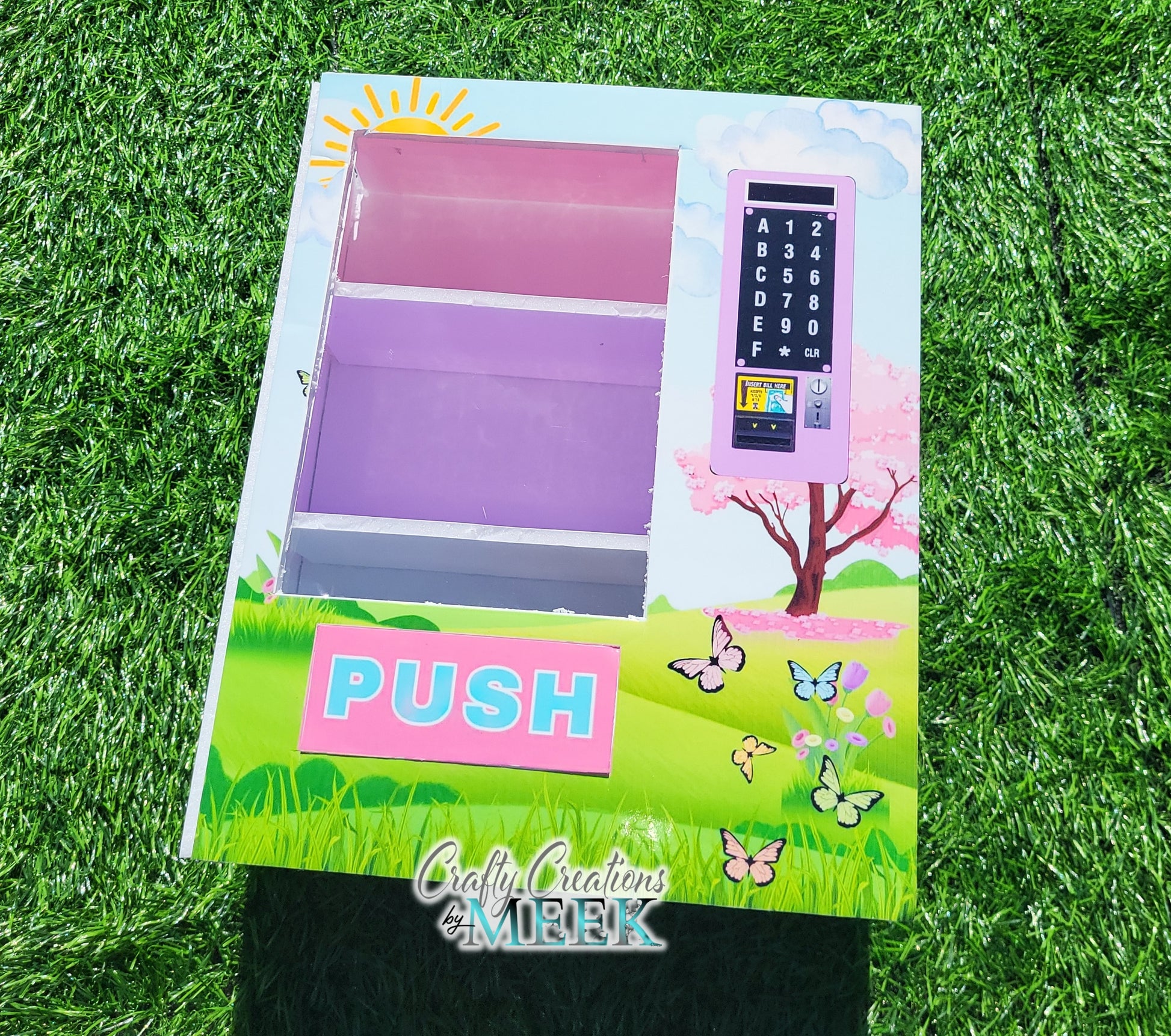 - Eye-catching foam board design that mimics a real vending machine