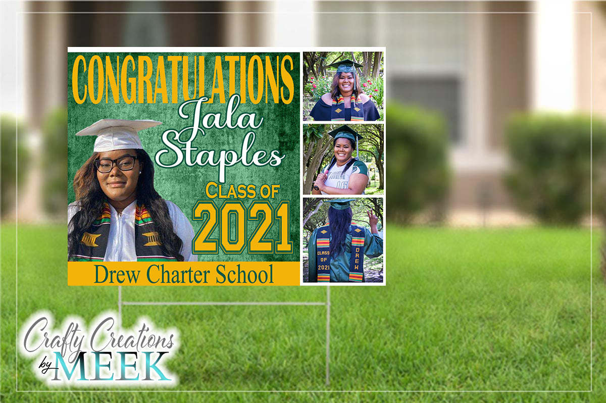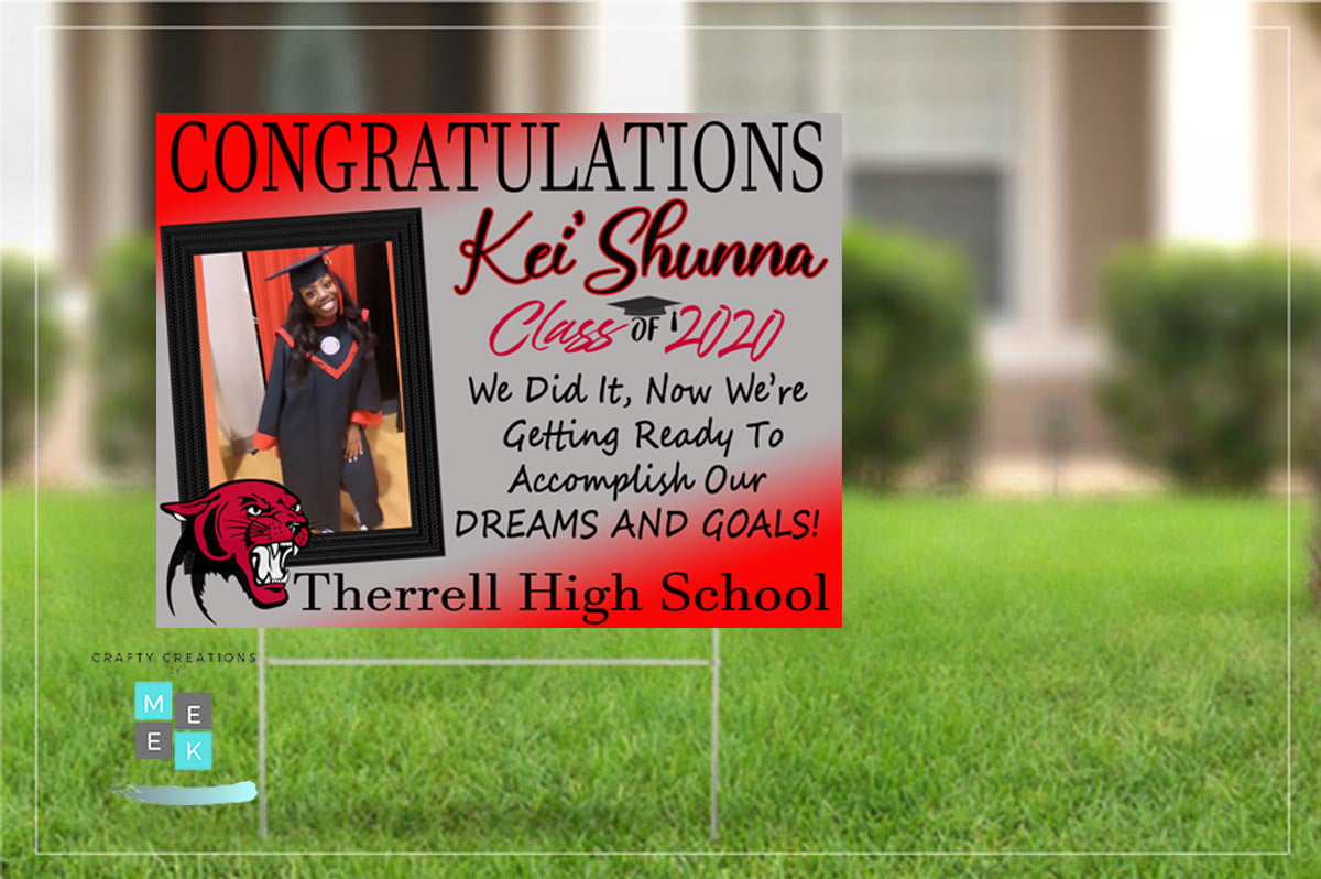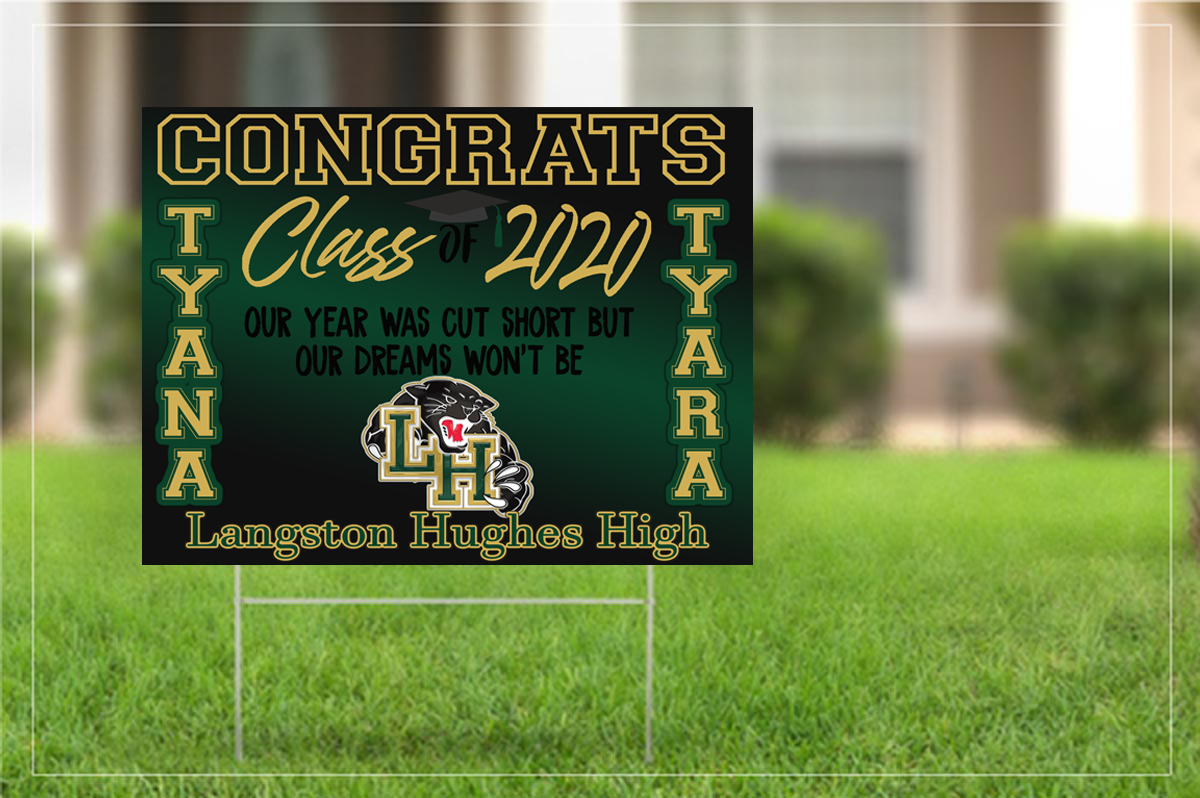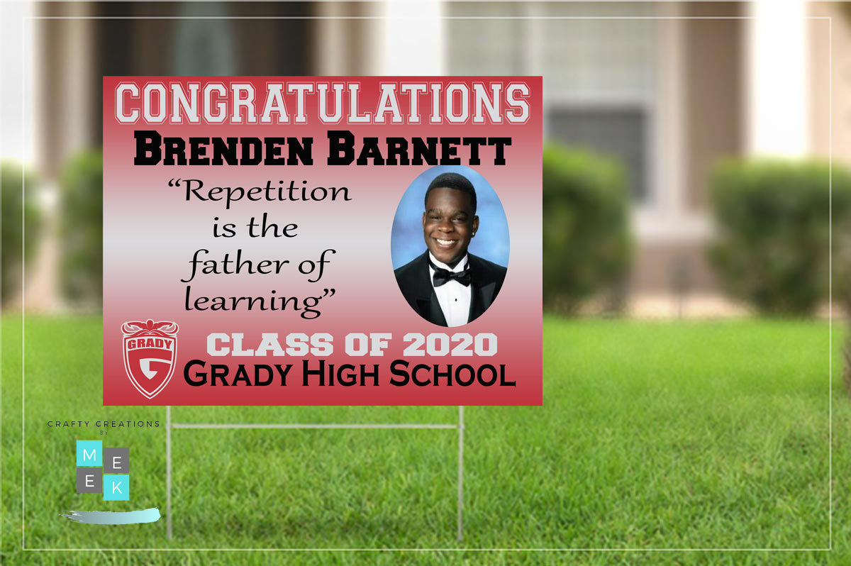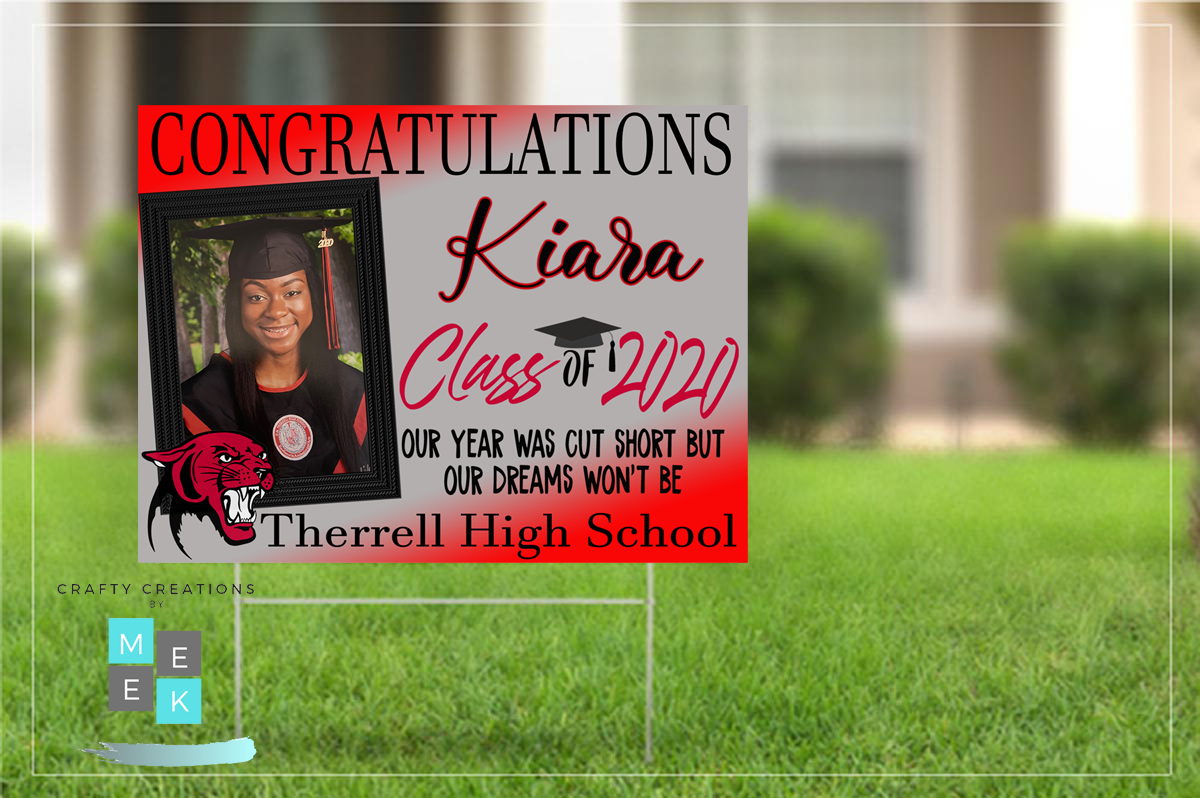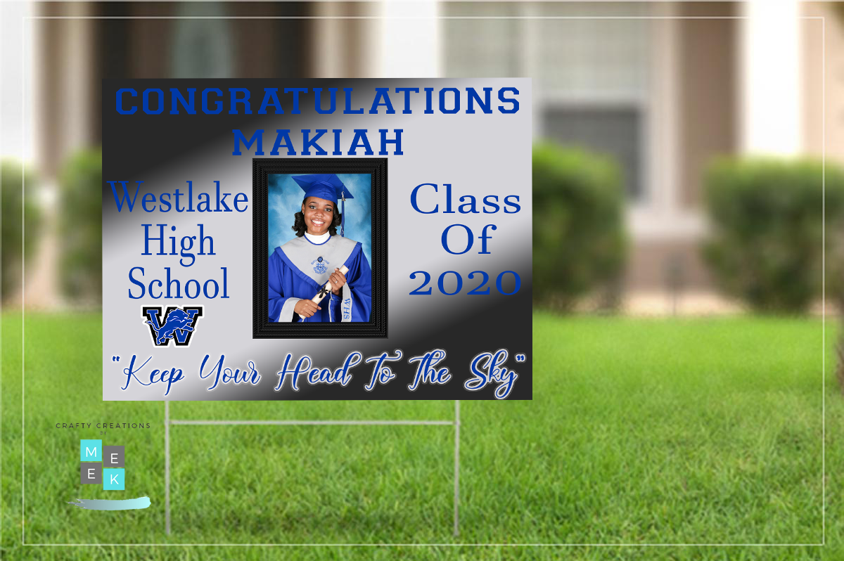 Looking for a great touch to announce your seniors upcoming graduation? Try our custom yard signs. Can be customized for any school.