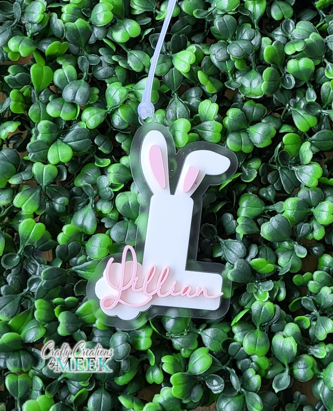 🐰🌸Add a personal touch to your Easter basket with our initial basket tag. Made of high-quality acrylic, this tag features your little one's initial with their name in cute bunny ears. With 3 layers for a durable and long-lasting design, it's a perfect addition to your spring celebrations. Available in 5 charming colors.