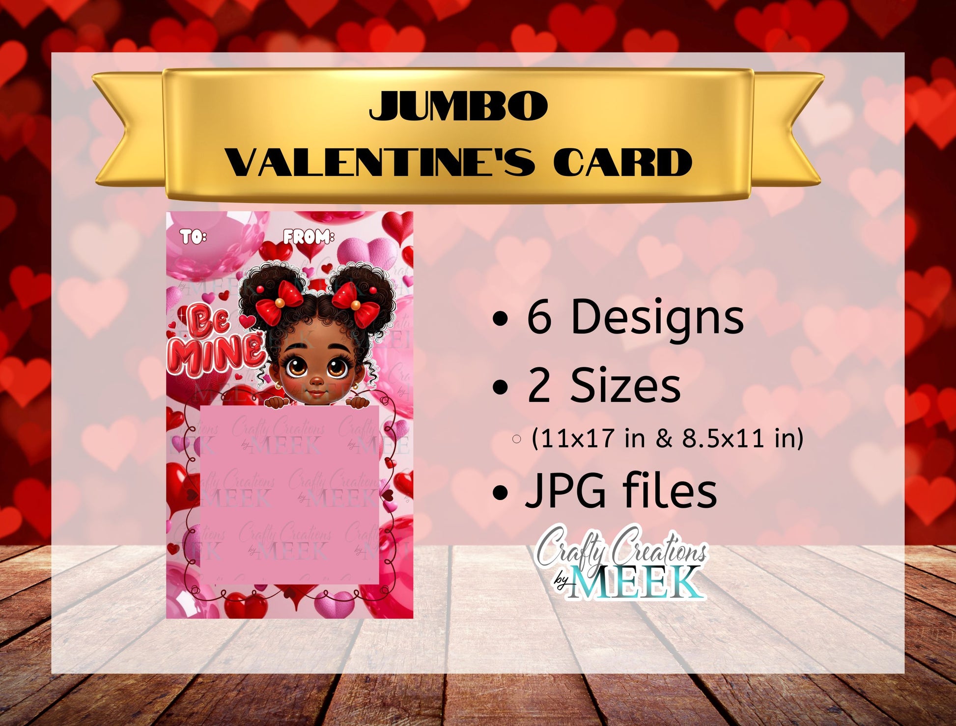 Spread love this Valentine’s Day with our bundle of 6 digital jumbo Valentine’s card designs. These vibrant cards are perfect for African American children.