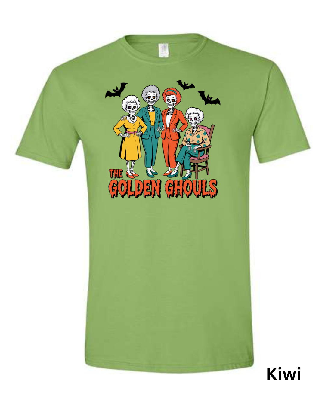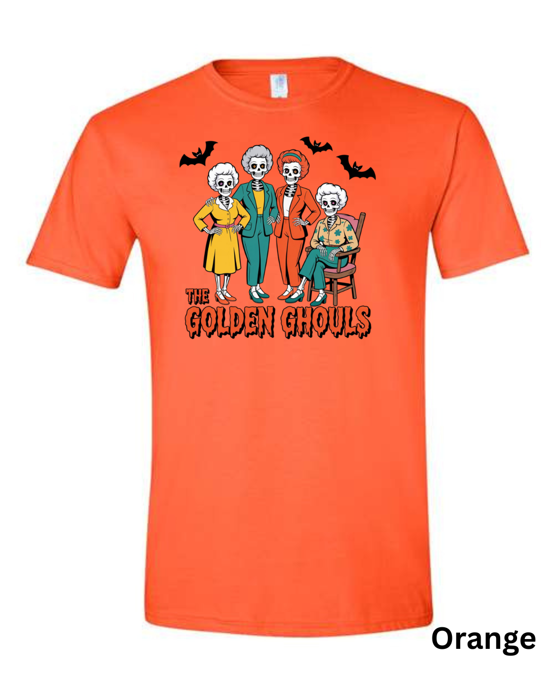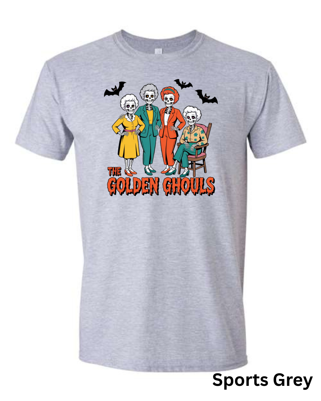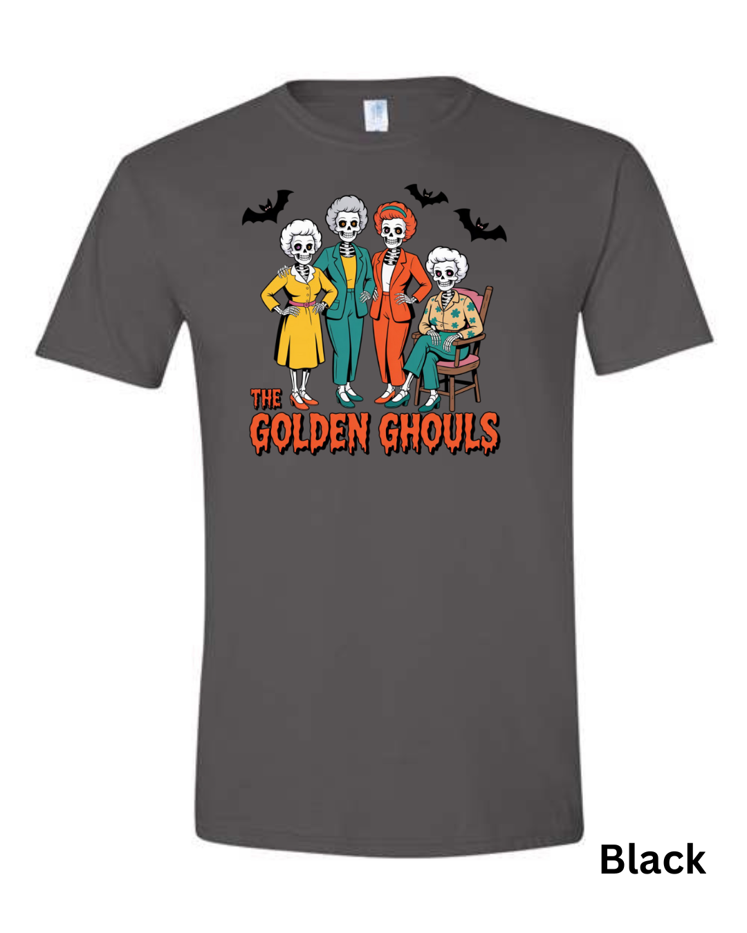Add some spooky humor to your wardrobe with The Golden Ghouls T-Shirt! Featuring a playful skeleton twist on a classic TV favorite, this Halloween graphic tee is perfect for fans of retro comedy and creepy-cute style.